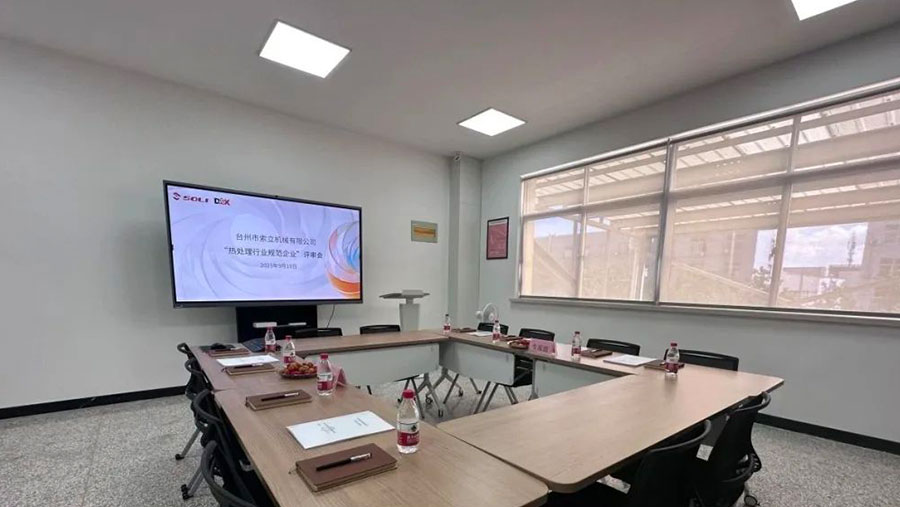 開幕式上,還對(duì)《熱處理行業(yè)規(guī)范條件》達(dá)標(biāo)企業(yè)進(jìn)行了授牌儀式。索立作為國(guó)內(nèi)第一批獲得該項(xiàng)榮譽(yù)的企業(yè),第三次獲得殊榮。 評(píng)審現(xiàn)場(chǎng) 中國(guó)熱處理行業(yè)協(xié)會(huì)會(huì)長(zhǎng)李新亞研究員,中國(guó)熱處理行業(yè)協(xié)會(huì)榮譽(yù)會(huì)長(zhǎng)/監(jiān)事長(zhǎng)佟曉輝研究員,孫超副秘書長(zhǎng)組成的專家團(tuán)對(duì)索立的研發(fā)中心,生產(chǎn)現(xiàn)場(chǎng),管理體系等做了現(xiàn)場(chǎng)審核,對(duì)于企業(yè)在熱處理技術(shù)的研發(fā)和生產(chǎn)過程的智能化和自動(dòng)化予以肯定,同時(shí)也對(duì)企業(yè)在能效管理等的不足之處予以意見及建議。